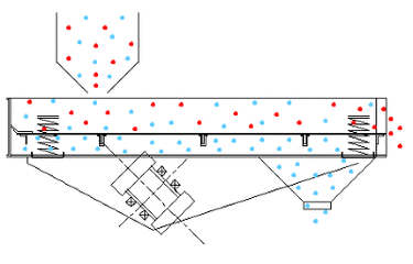 花椒清選振動(dòng)篩為雙振動(dòng)電機(jī)驅(qū)動(dòng)。當(dāng)兩臺(tái)振動(dòng)電機(jī)做同步、反向旋轉(zhuǎn)時(shí),其偏心塊所產(chǎn)生的激振力在平行于電機(jī)軸線(xiàn)的方向相互抵消,在垂直于電機(jī)軸的方向疊為一合力,因此篩機(jī)的運(yùn)動(dòng)軌跡為一直線(xiàn)。兩電機(jī)軸相對(duì)篩面在垂直方向有一傾角,在激振力和物料自重力的合力作用下,物料在篩面上被拋起向前作直線(xiàn)運(yùn)動(dòng),從而達(dá)到對(duì)物料進(jìn)行篩選和分級(jí)的目的。適用于粒度在0.074—5mm,含水量小于7%,無(wú)粘性的各種干式粉狀或顆粒狀物料的篩分。給料粒度不大于10mm.